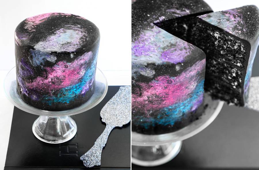 Les créations culinaires du blogger Heather Beard sont à experimenter d’urgence. Après les cupcakes terrariums, ce gâteau baptisé Black Velvet Nebula vous emmènera dans les confins de l’univers. À l’aide de colorants bleus, roses et violines appliqués sur la surface noire du gâteau, le pâtissier signe ici un fondant au chocolat sous forme de création cosmique. Découvrir la recette ici.