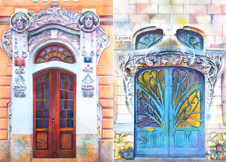 L’architecture propre à chaque pays témoigne des particularités culturelles des différentes zones géographiques du globe. L’artiste Viktoria Kravchenko a décidé de représenter des portes d’entrée à l’aquarelle. On retrouve ainsi au sein de ses divers travaux des pays comme la République Tchèque, la France, la Belgique ou encore la Lettonie.