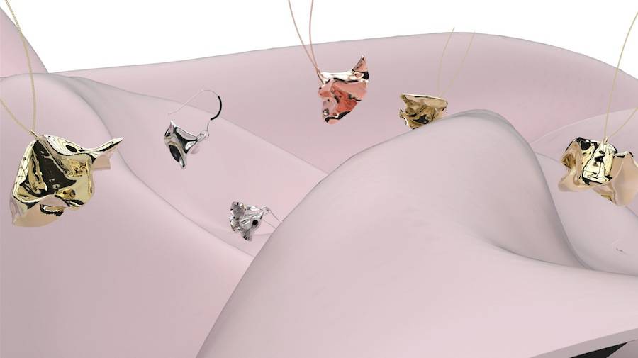 Love & Robots a conçu une collection de bijoux en impression 3D, intitulée Windswept, qui s’inspire des mouvements provoqués par le vent sur des matières légères (comme le ruban et le tissu). Composée de boucles d’oreilles et de colliers en or et argent, cette collection puise ses formes des données météorologiques de différentes villes telles que Berlin, Genève, Madrid, Londres et Dublin.
