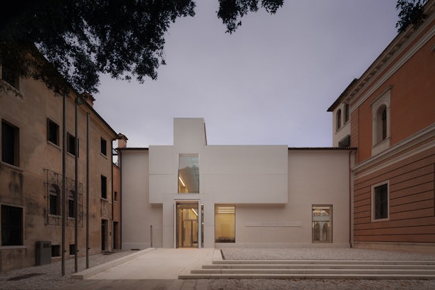 Located in Treviso near Venice, this art museum is housed within a 15th-century monastery building. Showcasing a collection of 20th-century art, the museum was renovated with a new façade and cross-shaped frontage enveloped in polished Marmorino plaster and terrazzo.