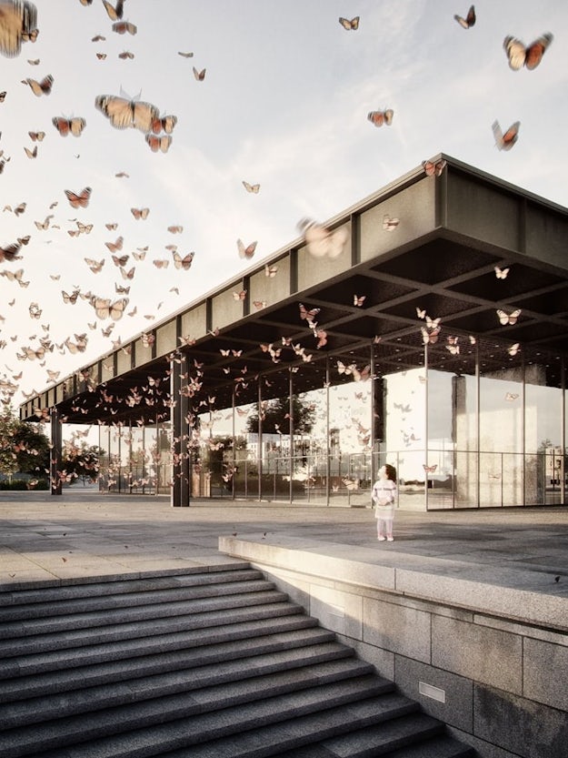 Neue Nationalgalerie by Mies van der Rohe, rendering by Stefan Hirschsteiner