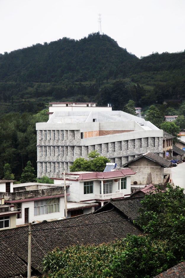 A new model for rural healthcare in China, the Angdong Hospital and its facilities are accessed via a wide ramp that wraps continuously around all the composite parts. Precast-concrete screens and recycled traditional brick provide the necessary thermal comfort, whether used purely for circulation or gathering at the numerous seating points.