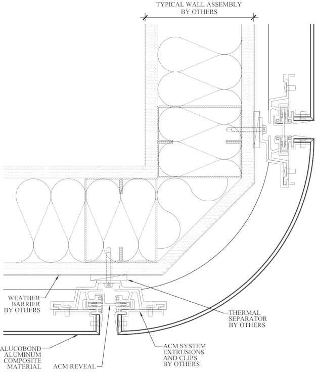 Typical Alucobond cladding detail (radius outside corner detail); via Alucobond