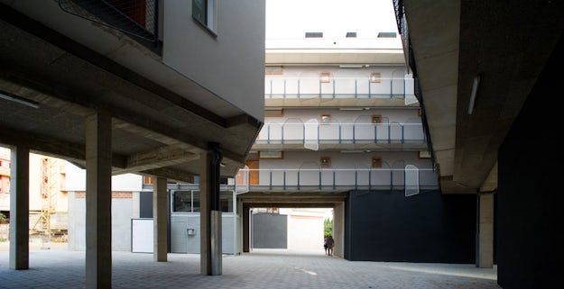 Though this award-winning project in Canada was meant to improve social life for an economically depressed neighborhood, the area has been plagued by issues since opening (though the architects have launched a fierce defense in response to recent criticisms). The through-street and courtyards, intended to engender community and safety have in fact been a magnet for alcohol and drug use. This project, admirable in its aims, is a cautionary tale of informal-inspired housing projects.