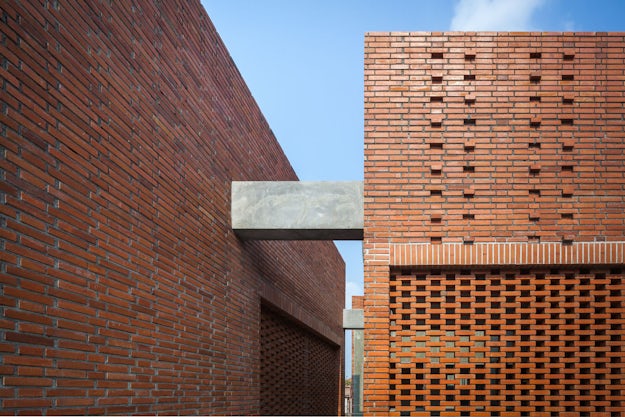 Exploring the common and everyday application of brick, this house embraces a tropical lifestyle with a brick screen façade and two-layer brick walls that let in natural light. As a collaboration between the architect and a local artisan, bricks in the façade were rotated to stand proud of the envelope and create a repeating vertical pattern.